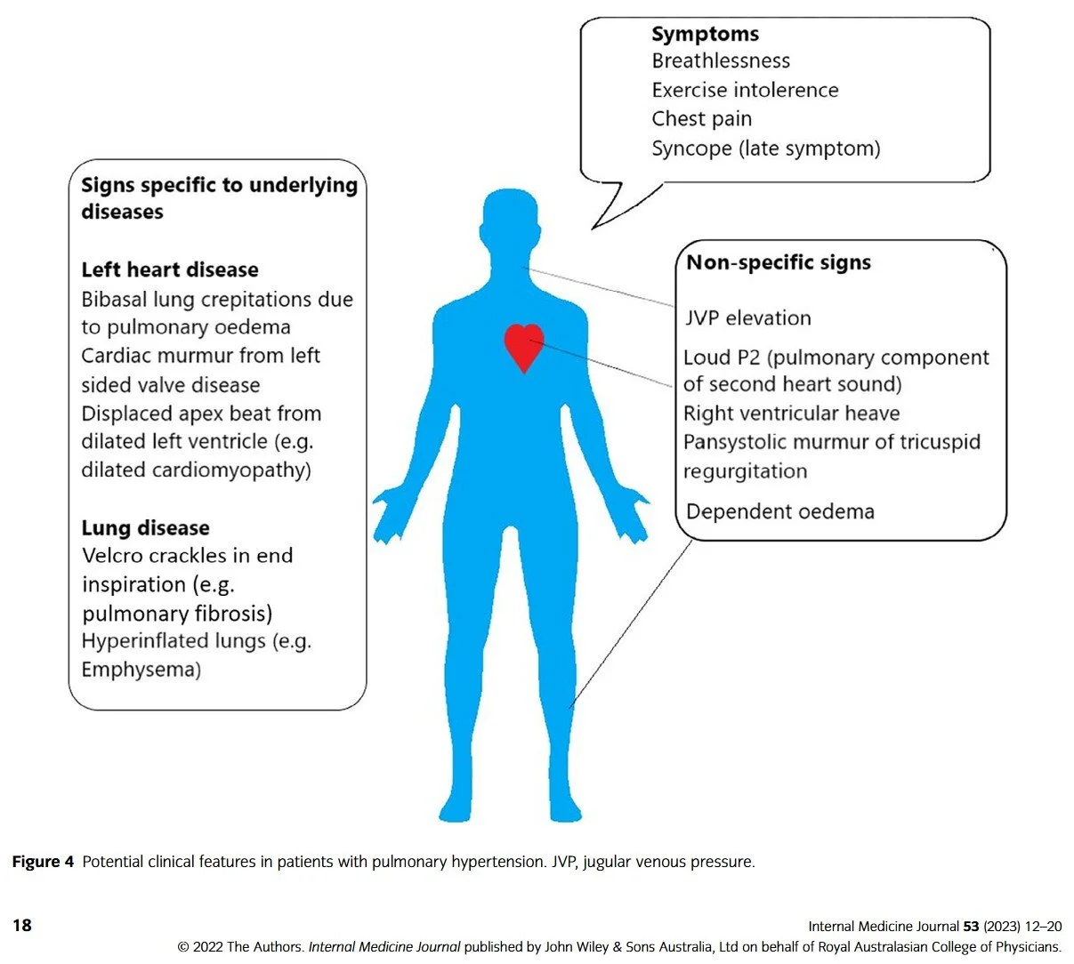 ☐ Unexplained dyspnoea, loud second heart sound, signs of right heart strain